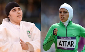 In the 2012 Olympics, two Saudi women made history by becoming the first ever female athletes to compete representing Saudi Arabia.  Although the circumstances surrounding their involvement in the Olympics bordered on extortion - KSA was forced to cave in to pressure by the Olympic Committee’s very real threat of disallowing the kingdom’s male athletes if females were not allowed to participate    (heaven forbid if Saudi men were deprived from competing!) -  these two token Saudi women definitely created the most buzz and attracted the most attention of any athletes at the Olympics.