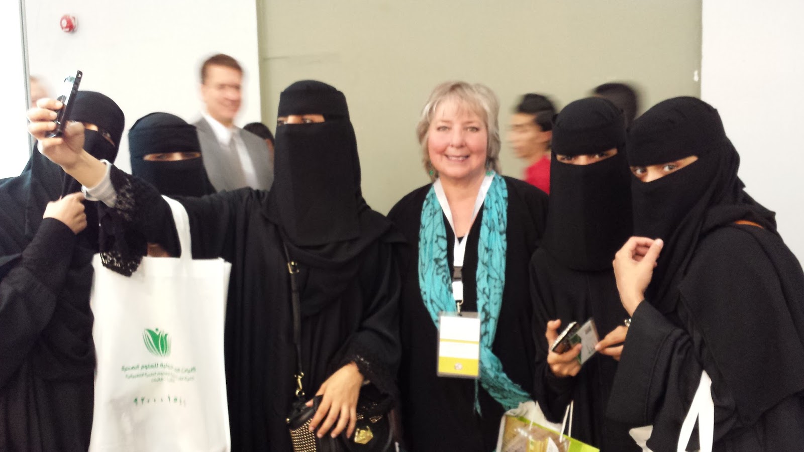 My favorite photo from 2015 is one that my husband actually took of me with several young Saudi women at the huge IECHE Education Fair that was held in Saudi Arabia's capital city of Riyadh in April 2015.  This annual fair is attended by thousands of Saudi students and their parents who are searching for the right institution of higher education for their child's chosen field.  The CPVPV (Committee for the Promotion of Virtue and Prevention of Vice, a.k.a. Saudi Arabia's religious police) even has a large booth at the event, trying to recruit new trainees.  The event is open to all and is free.  Hundreds of universities and technical schools from all over the world are represented, trying to attract students to their programs.  It is quite an impressive event.